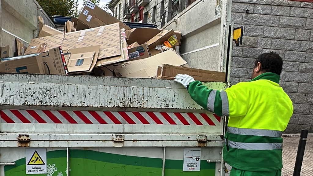 El objetivo es facilitar a los comerciantes la recogida de sus restos de cartón, de manera que solo tienen que sacarlos plegados a primera hora de la mañana frente a la puerta de su establecimiento y los operarios de limpieza lo recogen para llevarlo al punto limpio.