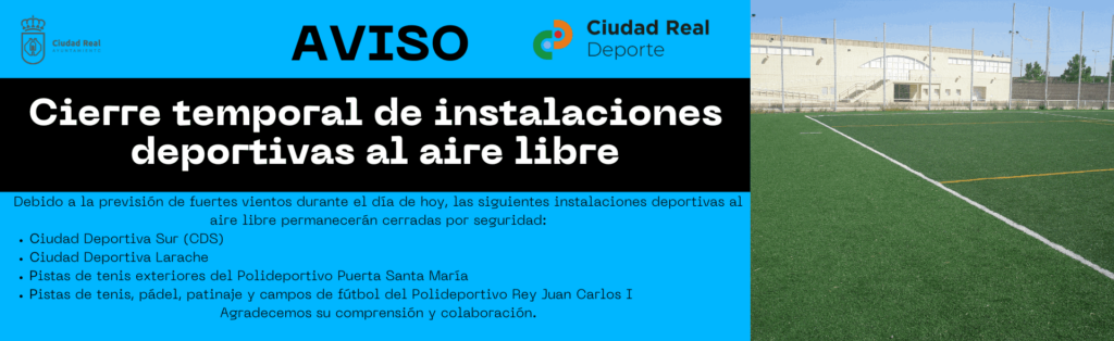 Aviso Cierre temporal de instalaciones deportivas al aire libre