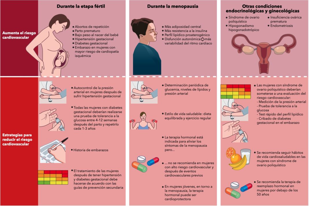 Pero antes de llegar a la menopausia, existen otras condiciones propias de la mujer que también se relacionan con un incremento del riesgo cardiovascular: