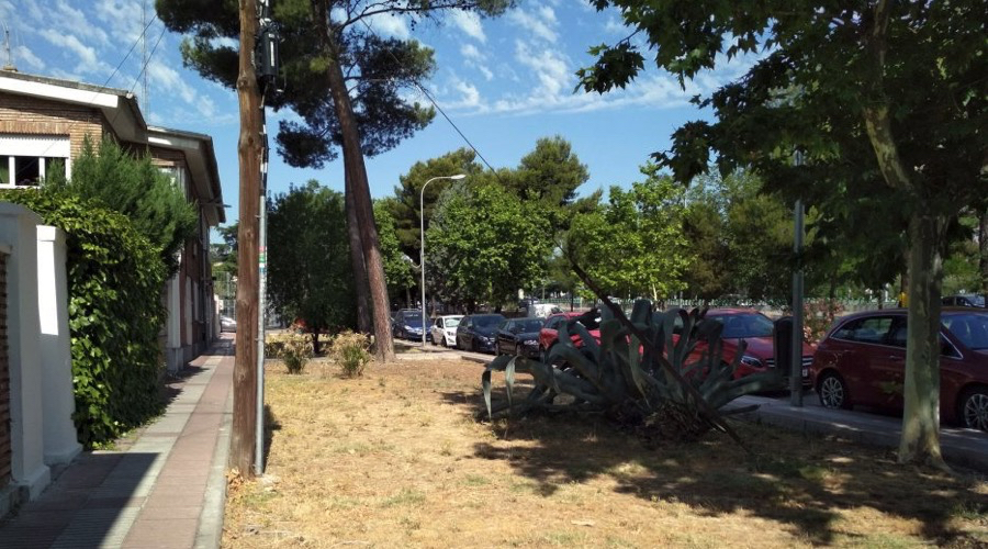 Además, al no estar visibles y accesibles las tuberías, las posibilidades de vandalismo se minimizan. Este sistema de riego enterrado por goteo se emplea en otras parcelas ajardinadas de Madrid como Valdebebas. Por otro lado, al igual que en las remodelaciones ejecutadas con anterioridad en la colonia de Ciudad Pegaso, todas las nuevas plantaciones se dotarán de riego automático por goteo.
