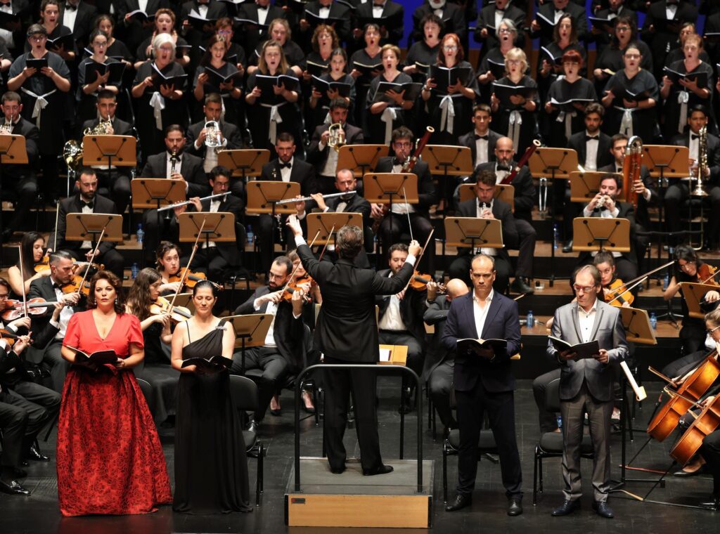 Tres celebraciones se reunieron ayer en el concierto especial de inauguración: la del propio debut del festival, los 25 años de historia de la Orquesta Carlos III y los 200 años de uno de los hitos más relevantes de la música clásica: el estreno de la Novena sinfonía de Ludwig van Beethoven, el 7 de mayo de 1824. Pocas obras han impactado, conmovido y conmocionado tanto al público, pocas han influido de una forma tan poderosa en el devenir de la sinfonía, de la música, de la cultura y del papel que ésta juega en la sociedad. Constituye una celebración del genio y la capacidad sin límites del ser humano, de la alegría, de la libertad y de la humanidad, que lejos de pasar de moda, crece en nuestra apreciación y en su significado. La Orquesta Carlos III que dirige Juan Manuel Alonso contó con las voces de Carmen Solís, Cristina Faus, Javier Tomé, Rubén Amoretti y la Sociedad Coral de Bilbao. |