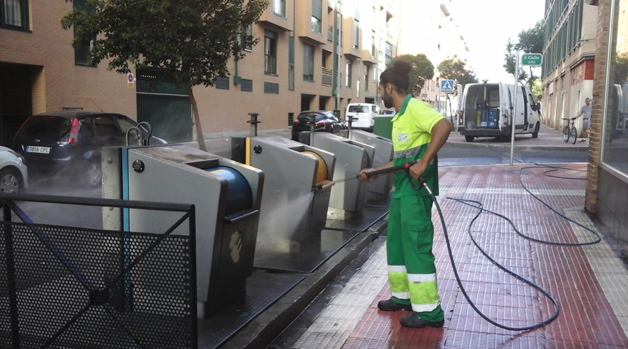 -Limpieza del entorno de los puntos de contenedores, mediante equipo de hidropresión.