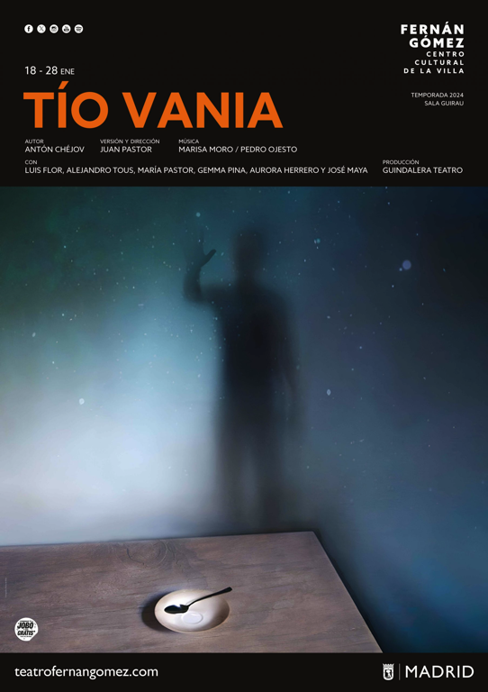La compañía madrileña Guindalera estrenará mañana jueves, 18 de enero, en el teatro Fernán Gómez. Centro Cultural de la Villa, una nueva propuesta a partir de un texto de Chéjov, Tío Vania, con versión y dirección de Juan Pastor, que se podrá disfrutar hasta el 28 de enero en este espacio del Área de Cultura, Turismo y Deporte. Para este montaje, Juan Pastor ha partido de un trabajo de investigación y estilo que da continuidad al proceso creativo desarrollado por la compañía en la pequeña sala de teatro que gestionaron durante 17 años en la capital, el Teatro Guindalera.