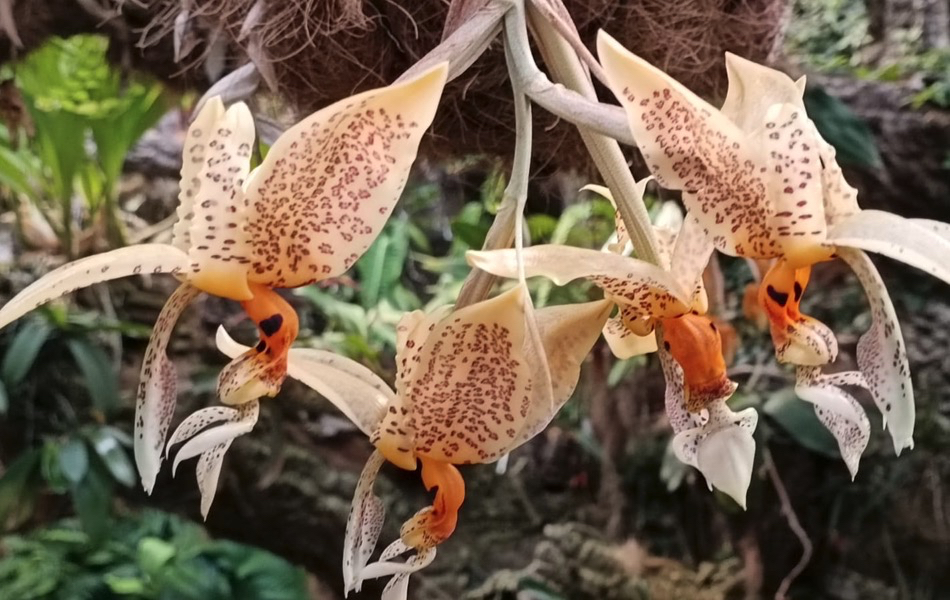 El Parque Botánico-Orquidario de Estepona acoge la floración de la orquídea ‘stanhopea oculata’, una especie única que se caracteriza por su belleza y por emitir una intensa fragancia a chocolate blanco. Su gran esfuerzo en despedir tan característico y potente olor acorta la duración de sus floraciones, que no suelen superar los tres días.