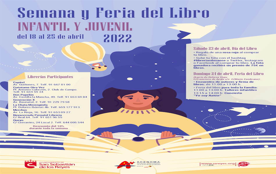 El Ayuntamiento de San Sebastián de los Reyes, a través de sus delegaciones de Desarrollo Local y de Cultura, junto con ACENOMA (Asociación de Empresarios de la Zona Norte de Madrid), organiza la Semana y Feria del Libro de Sanse con el objetivo de promocionar la lectura, acercando a los vecinos la magia de los libros.