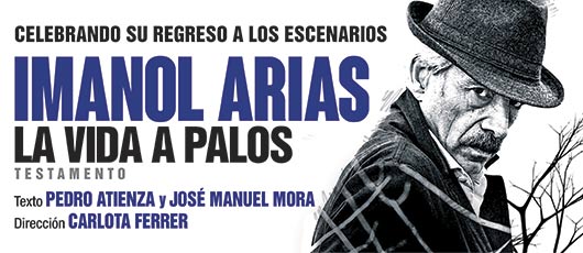 Tras casi treinta años lejos de los escenarios el más que conocido actor Imanol Arias estrena en el Teatro Campos Elíseos La vida a palos, una obra dirigida por Carlota Ferrer, escrita por Jose Manuel Mora y en la que el actor rinde su personal homenaje a su amigo Pedro Atienza. Este trabajo se adentra en el mundo del flamenco a través de su protagonista “El Alcayata”, un hombre hecho a sí mismo.