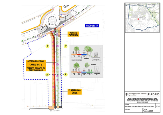 En paralelo y fuera del ámbito objeto de la modificación del PGOUM, se han definido zonas en las que se propone llevar a cabo actuaciones complementarias de mejora de la urbanización de la red viaria existente. Para ello, se procederá a la reurbanización de la intersección entre las calles de San Eustaquio y de San Norberto, eliminando el aparcamiento existente, creando un nuevo espacio ajardinado y reorganizando la circulación peatonal para facilitar su movilidad entre el bulevar de la calle de San Eustaquio y su ampliación en el tramo norte de la vía.