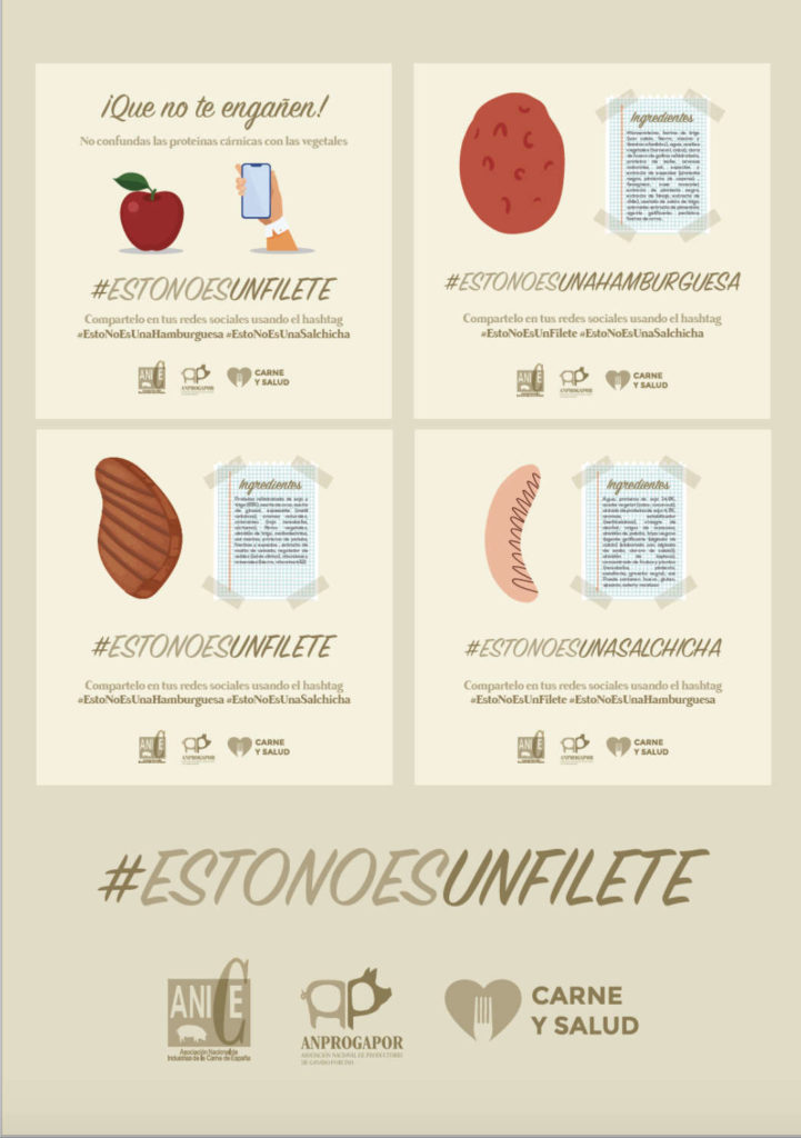 A través de esta campaña, que se desarrollará en medios de comunicación digitales y en las redes sociales bajo los hashtag #EstoNoEsUnFilete, #EstoNoEsUnaHamburguesa y #EstoNoEsUnaSalchicha, se pretende defender las denominaciones de productos cárnicos tradicionales, así como poner en valor el compromiso de todo el sector con un etiquetado claro y eficaz para los consumidores que evite engaños y malentendidos llamando a cada producto por su nombre.