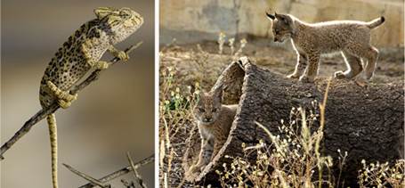 El último escenario es el que se da con especies como el búho real, Bubo bubo, la nutria, Lutra lutra o el camaleón, Chamaeleo chamaeleon, especies muy populares pero poco amenazadas cuyas poblaciones se ven reforzadas con proyectos de reintroducción no tan necesarios.