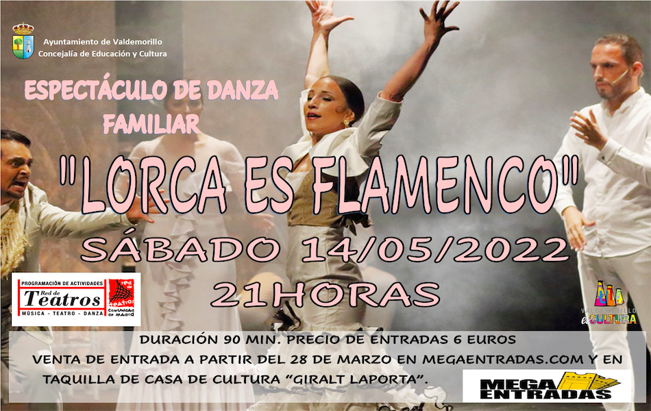 “La calidad de este espectáculo levanta ovación allí donde se representa, por lo que desde la concejalía de Educación y Cultura estamos seguros que la de este sábado va a ser una gran y emotiva velada con la danza y la poesía compartiendo protagonismo”, según augura Eva Ruiz. De hecho, el precio único por localidad, de 6€, resulta asequible, y, buscando también dar la mejor cobertura a la posible demanda, las entradas están ya a la venta, tanto de forma presencial, en la Casa de Cultura, como en www.megaentradas.com. “Confiamos que el patio de butacas complete aforo en una tarde tan especial, en la que vamos a disfrutar del flamenco más auténtico”.