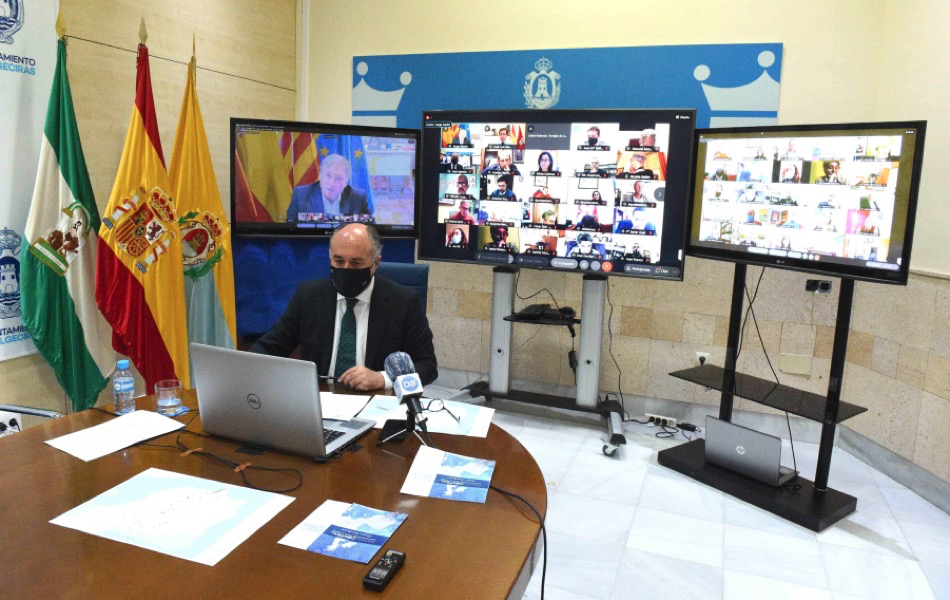 En primer lugar, el alcalde de Algeciras dio la bienvenida a todos los regidores y afirmó que “es un auténtico orgullo estar hoy aquí con todos vosotros aunque sea de forma telemática debido a las circunstancias sanitarias en la que nos encontramos, por eso quería agradeceros el entusiasmo con el que habéis acogido esta iniciativa que esperemos siga creciendo y consiga su objetivo para el progreso de nuestro país y de todos los pueblos y ciudades implicados en el proyecto”.