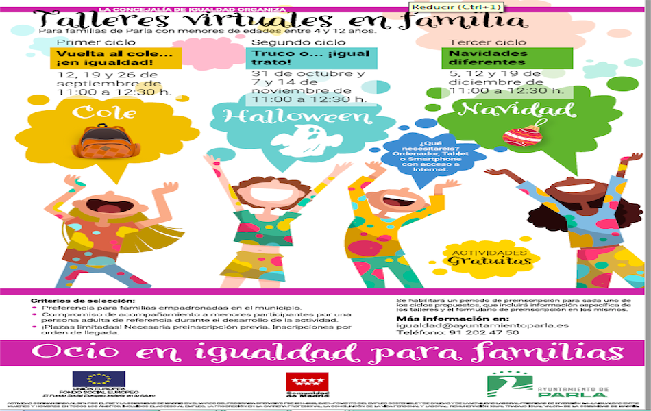 Por último, durante el último cuatrimestre del año se va a llevar a cabo el programa “Ocio en familia x la igualdad”, que incluirá ciclos de talleres en familia, cuenta cuentos participativos, dinamizaciones teatrales y escapes rooms virtuales.
