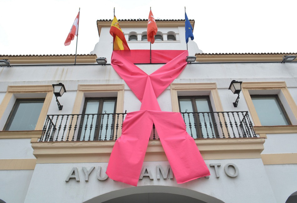 • Colocación del lazo rosa símbolo de la lucha contra el cáncer de mama, en la fachada del Ayuntamiento.
